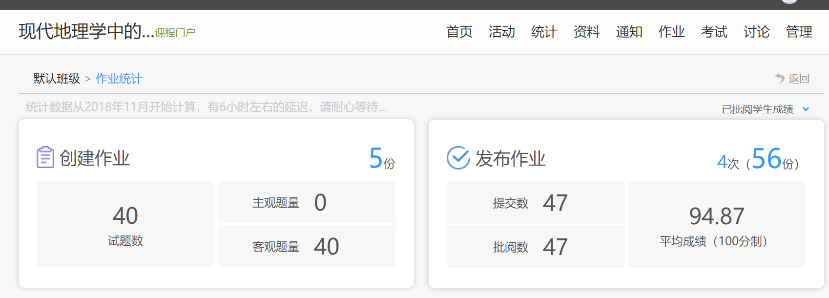 图4 计量地理学员工作业完成情况