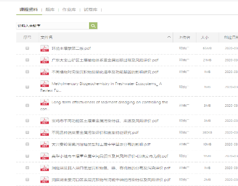 研究生与本科生教学存在的一定的差异性,研究生教学更加注重于科研的训练,相关的教学材料以及所采用的教学方式与本科生也有所差异。上课前,将教材、相关的最新研究文献等相关教学材料提前上传到学习通平台上的资料模块,能够让员工提前了解相关土壤环境地球化学的知识和相关研究内容,如下图所示: