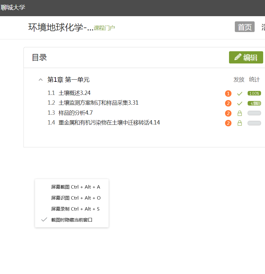 在教学内容上,考虑到研究生的基础和以后的发展问题,除了准备了相关的基础知识(土壤理论和典型物质的迁移转化)外,同时注重于当前对土壤环境监测的需要,着重讲授了土壤环境监测的具体内容,包括方案制订、样品类型、样品采集与分析以及土壤质量的表征。这些课程内容根据最新研究成果和国家规定进行补充和完善。根据教学内容和课程安排,提前录制视频7个,并编制课程教学目录,根据各章节内容上传视频、PPT等相关学习资料,并在上传后找同学预观看,根据效果进行调整,直至满意。具体如下图所示: