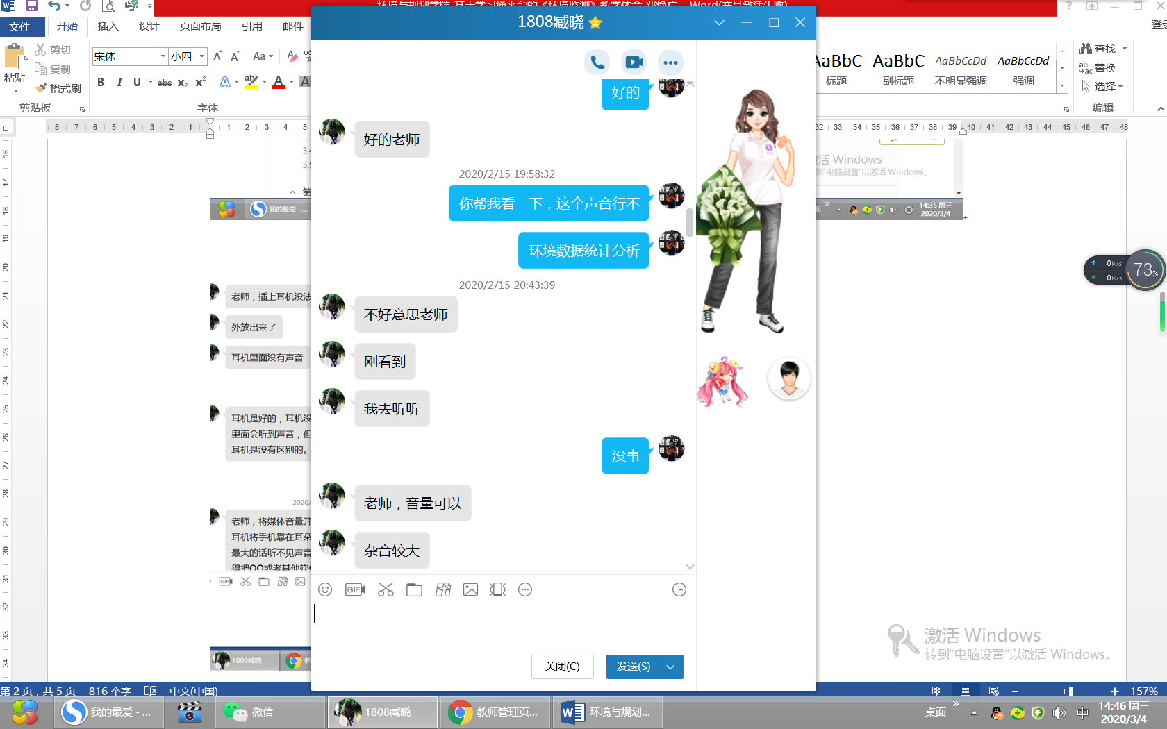 充分利用学习通平台的各种功能,包括通知、群聊、私聊以及微信等平台及时发布教学内容方面的通知和事项。并采用多种途径(学习通、微信、QQ等)及时与同学进行交流。在学习通平台无法保证直播的情况下,课堂时间充分利用平台的签到功能,掌控员工的按时到课情况,并通过课堂和群聊的反馈情况,掌握同学的在课堂上的参与、思考和知识掌握情况。针对课上员工的反馈,及时在群聊中进行总结归纳。