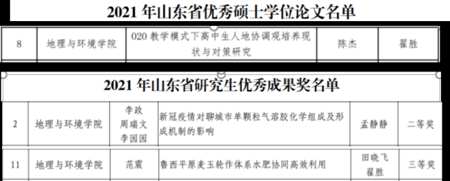 6、2021年10月,公司研究生荣获山东省2021年研究生优秀硕士学位论文1篇、优秀成果二等奖、三等奖各1项,取得历年来最好成绩,在全校名列前茅。