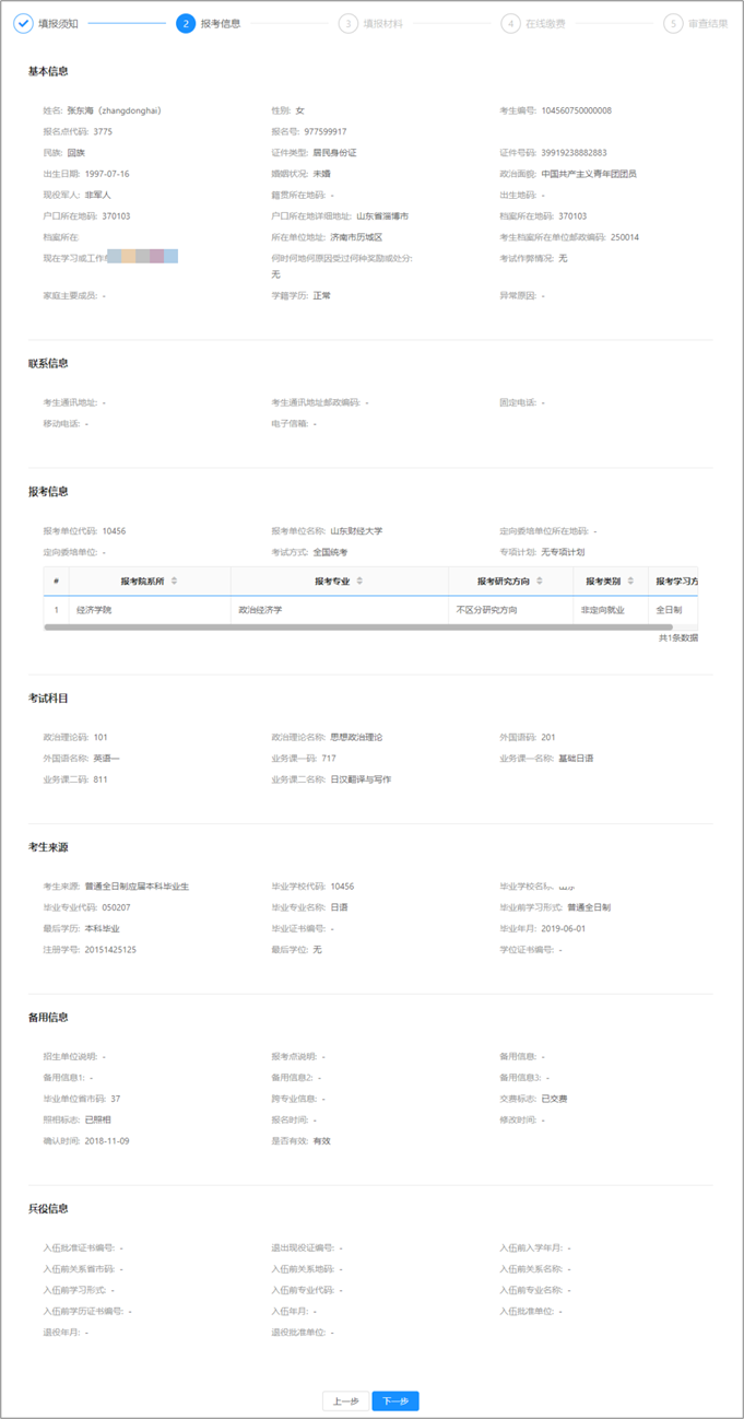 第二步:确认报考信息,查看信息后,点击【下一步】。