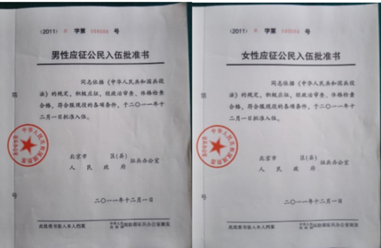 《入伍批准书》样式: