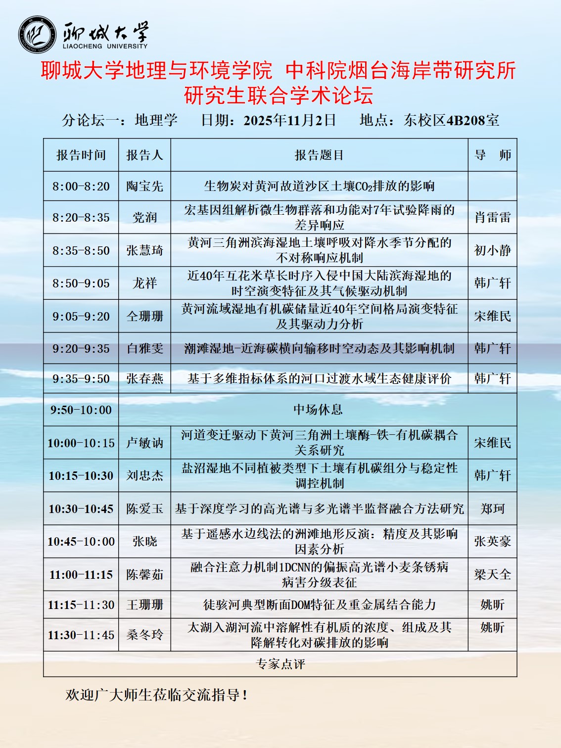» 哈哈体育 中科院烟台海岸带研究所 研究生联合学术论坛(分论坛一)
