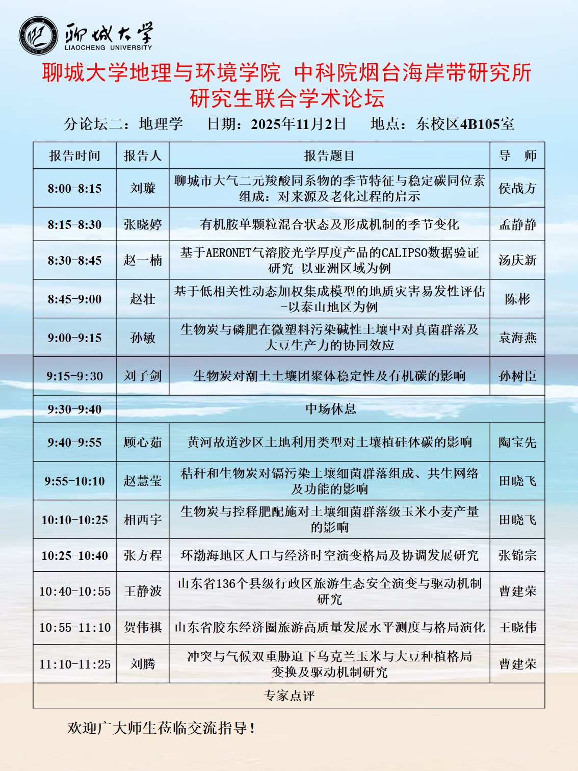 » 哈哈体育 中科院烟台海岸带研究所 研究生联合学术论坛(分论坛二)