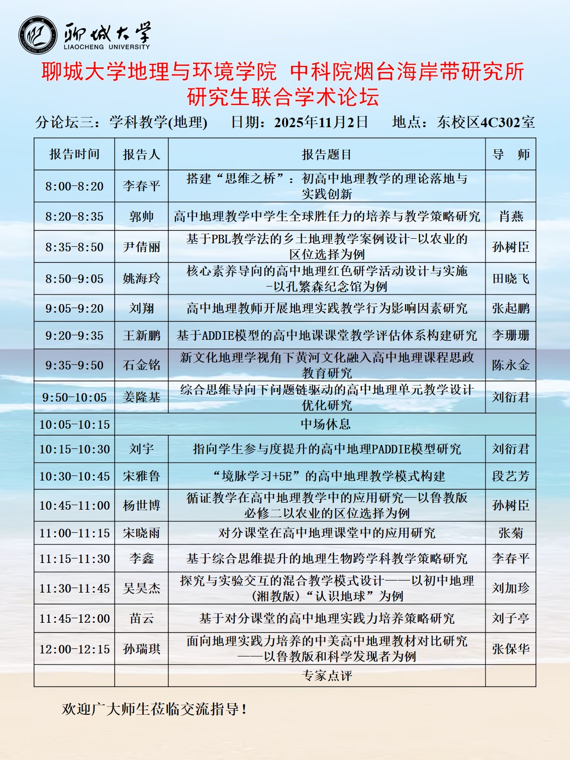 » 哈哈体育 中科院烟台海岸带研究所 研究生联合学术论坛(分论坛三)