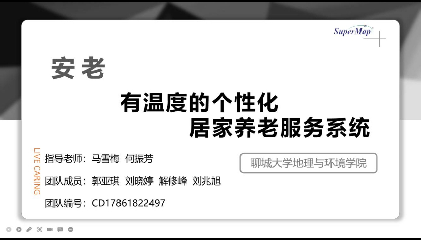 作品《安老——有温度的个性化居家养老服务系统》聚焦当下老年人养老问题,依托互联网技术,结合当今互联网+养老服务的时代主流趋势,致力于解决当前对于老年人团体的特殊规律性行动轨迹的忽略,养老服务的创新不足、供给有限以及老人很难找到适合自身的服务,老人发生意外无法及时预警以及养老各类数据挖掘利用不充分的问题。3S实验室团队利用手环采集老人信息、拟合规律轨迹,并且优化协同过滤算法,形成开放性推荐模型。系统对各类数据进行整理分析,结合WebGIS与移动GIS,对其进行空间可视化,同时嵌入手环,三端共联形成更有效的安全保障与服务体系。因为作品的创新性设计且具有现实性意义,最终,《安老——有温度的个性化居家养老服务系统》在大赛中获得二等奖。