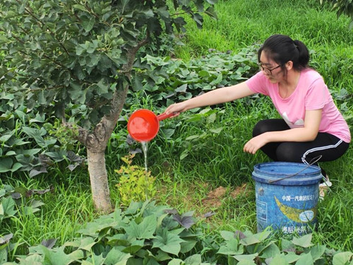 志愿者提前与物业等相关人员做好交涉,明确调研任务,准时到达场地。在辨别植物物种的过程中,志愿者在保护植物原生环境下时而低头端详,时而拍照查阅相关资料,认真记录,并与队员们分享实用的辨别小技巧,与队员们共同学习、共同进步。在专注于熟知植物习性之外,志愿者们还融知识于实践中,为植物浇水、除杂草、修剪、增肥等,感受保护生物多样性的乐趣。调研结束后,志愿者们利用环境与规划的学科知识,从环保的初衷为物业提供了相关的生物管理建议,这在很大程度上维持了小生态系统内最佳的动态平衡,也使教学效果得到了极大体现。