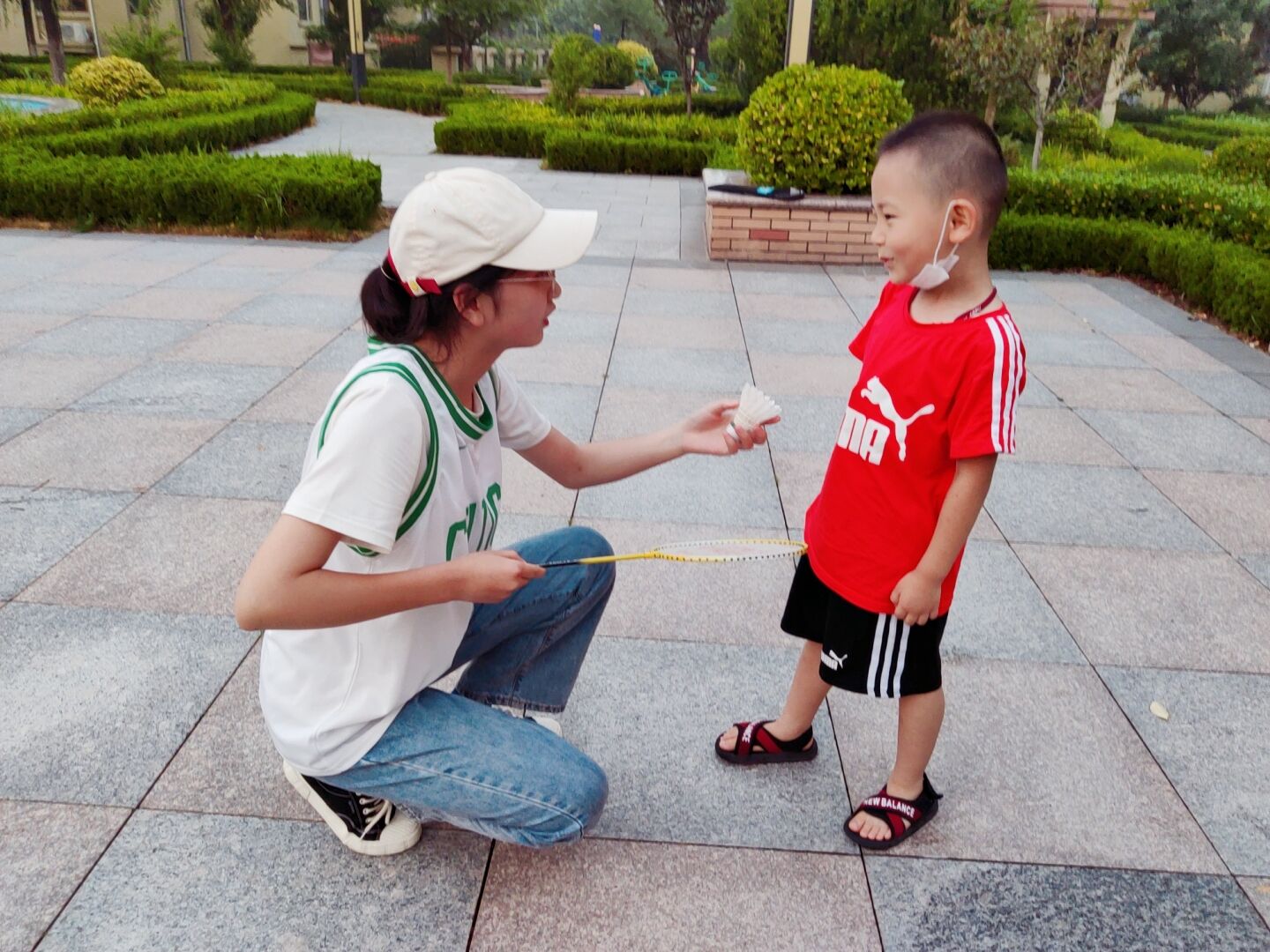 志愿者借助网络平台认真学习羽毛球的相关知识,为此次别开生面的比赛做好了充分的准备。为鼓励留守儿童大胆走出家门,与外界沟通交流,志愿者运用鼓励、示范、引导、同理心等技巧,积极动员、细心解说。孩子们热情开朗,踊跃参与,跟随志愿者一同前往广场进行羽毛球比赛。在比赛开始前,志愿者采用寓教于乐的方法,耐心地为孩子们介绍了关于羽毛球的历史和有趣的小故事,手把手地教给孩子们羽毛球的握拍姿势以及打法,并对羽毛球比赛的相关规则进行了讲解。孩子们根据抽签的顺序分别在赛场上展开激烈的角逐,随着羽毛球在空中回旋飞舞,对战双方积极跑动,腾挪跳跃、挥舞球拍,漂亮的技术球赢得了围观居民的阵阵喝彩。