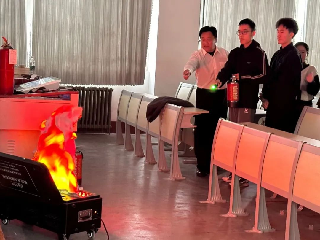 烛光传道,安全共建。秦正良对灭火器的使用做了详细的讲解,并进行了器材使用的安全演示,通过简练的“提”、“拉”、“握”、“压”总结了正确使用灭火器的步骤,以便同学们能够轻松记忆和掌握。随后,在秦正良的指导下,同学们亲自操作灭火器进行了实践训练,积极将所学的理论知识运用于实际操作中。