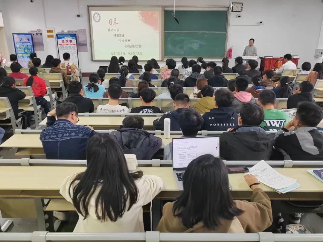 本次消防安全培训活动分为消防安全意识培养和灭火器使用演练两部分。活动开始时,来自公司保卫处的秦正良、马国栋、马飞等老师从基础知识、法规责任、安全提示等方面出发,对近年来发生在高校的火灾案例进行了生动的讲解,强调了消防安全的重要性。同时,马国栋向同学们介绍了如何检查消防安全隐患,如何培养“四个能力”等内容,与同学们分享了实用的防火知识和应对策略,呼吁同学们充分重视并积极参与消防安全的防护工作。