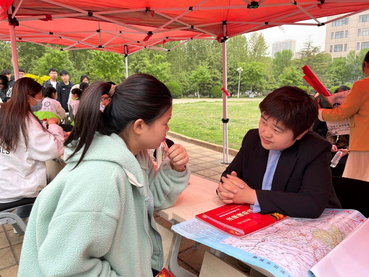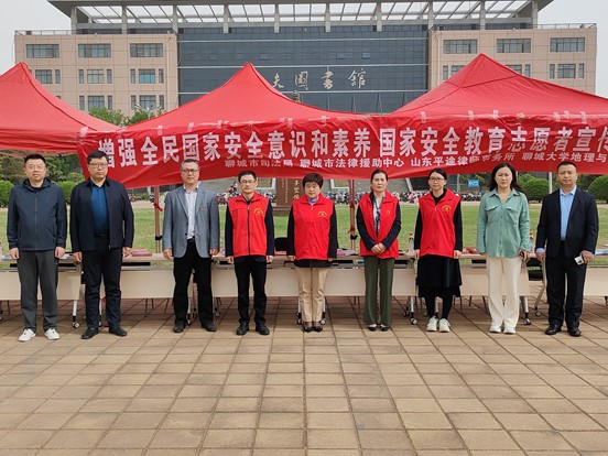 法律工作者通过发放“国家安全 你我有责”宣传页,“法律援助法”书本,“聊城市宪法宣传”挂图、“一图看懂民法典”等材料进行学习研讨、知识问答,让国家安全理念、法律法规知识走进同学们心中。