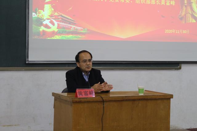 黄富峰首先从党的十九届五中全会对各项事业高质量发展的要求出发,提出在高等教育中,要把高质量立德树人落到实处。黄富峰谈到,聊城改革开放以来涌现出了身残志坚的张海迪、爱人民的孔繁森、引领时代志愿生活方式的徐本禹、胸怀家国的季羡林、主持人间正义的白云,他们受区域文化影响、响应时代的呼唤、历经生活的磨砺和组织的培养最终成为全国有影响的模范人物。借此,他希望员工党员要学习、研究、挖掘、实践聊城市改革开放以来模范人物所蕴含的重要思想政治教育价值,不负组织培养,争做员工中的先锋。