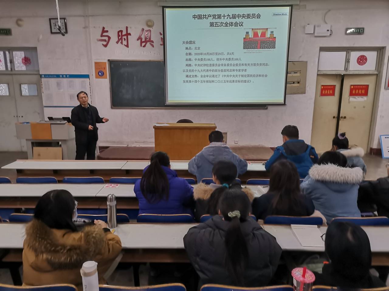 董杰以中国共产党第十九届中央委员会第五次全体会议盛况为切入点,详细介绍了大会的主要成果和主要目标,并对党的十九届四中全会以来中央政治局的工作进行了解说,呼吁全体学员增强“四个意识”、坚定“四个自信”、做好“两个维护”,紧密团结在以习近平同志为核心的党中央周围,把中国特色社会主义更加有力地推向前进。结合国际热点时事以及具体数据,董杰阐述了决胜全面小康社会取得的10个方面决定性成就,从国际和国内两个角度分析我国发展环境面临的深刻复杂变化,他提到,全党要发扬斗争精神,善于在危机中育先机、于变局中开新局,抓住机遇,应对挑战,奋勇前进。紧接着,董杰围绕“十四五”时期经济社会发展指导思想、主要遵循的原则和主要目标,到2035年基本实现社会主义现代化的9个方面的远景目标,实现目标的12大举措和1个“必须”、3个“要”进行讲解,全面地将十九届五中全会精神传达给全体学员。