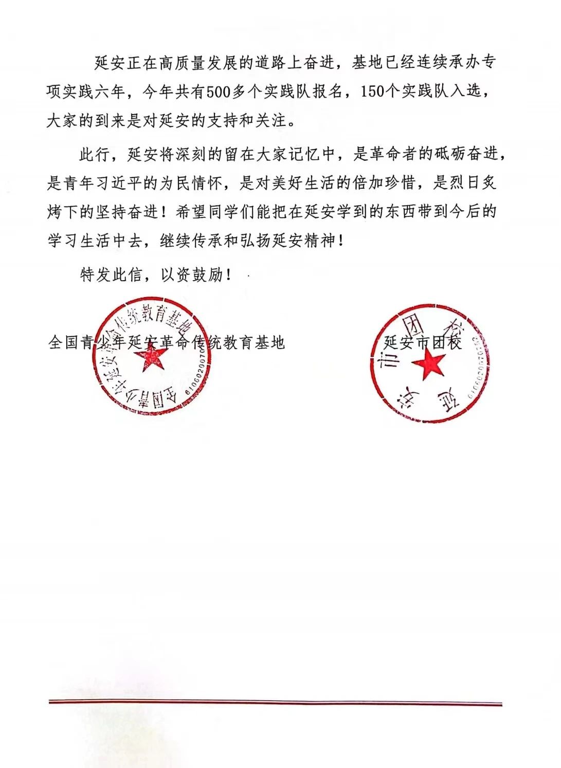 来自全国青少年延安革命传统教育基地的社会实践感谢信