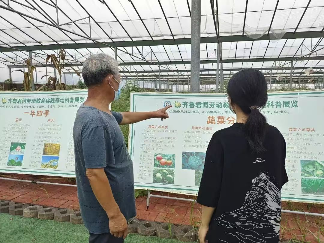 在凤凰镇乡村振兴田园综合体内的齐鲁君博劳动教育实践基地科普展览,工作人员向实践队介绍到当地传统的农耕工具和农耕文化,并结合如今的时代发展,开发出“农耕体验”这一新颖的文化传承方式,实现黄河流域农耕文化的继承与创新,以当地文化产业发展带动农村的经济发展,使优秀的传统文化实现新一轮的“造血循环”。