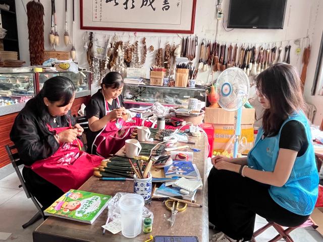 此外实践队成员们还近距离观察了毛笔制作的每一道工序。从选料到制作笔头、笔杆,再到最后的修整和检验,每一个步骤都需要匠人的精心操作和丰富经验。匠人们精湛的技艺和专注的态度让团队成员们深刻感受到了非遗文化的独特魅力。实践队成员还与手工艺人进行了深入的互动交流,了解了他们在传承和发展中遇到的困难和挑战。
