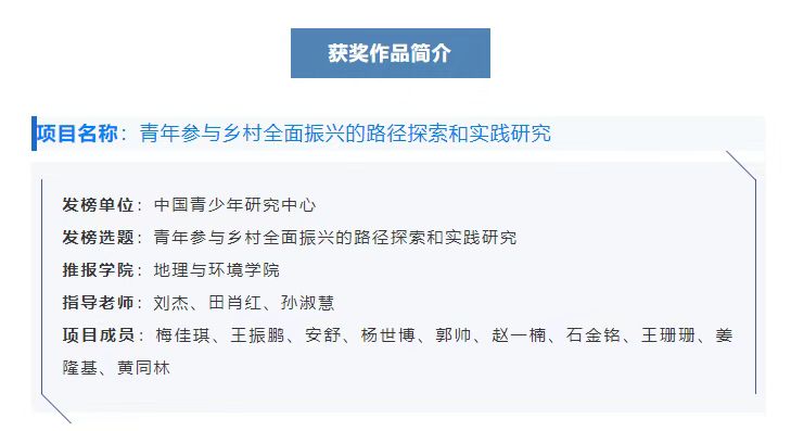 11月20日,第十九届"挑战杯"全国老员工课外学术科技作品竞赛"揭榜挂帅"专项赛获奖名单公布,公司《青年参与乡村全面振兴的路径探索和实践研究》项目获全国一等奖。