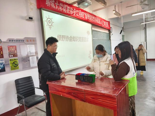 为倡导绿色生活方式,增强同学们的环保意识,提高同学们参与环保行动的积极性,12 月 8 日,HAHA体育绿野协会于东校区4#C306举办了“绿野蕴风华 环保滋人心”知识竞赛活动。