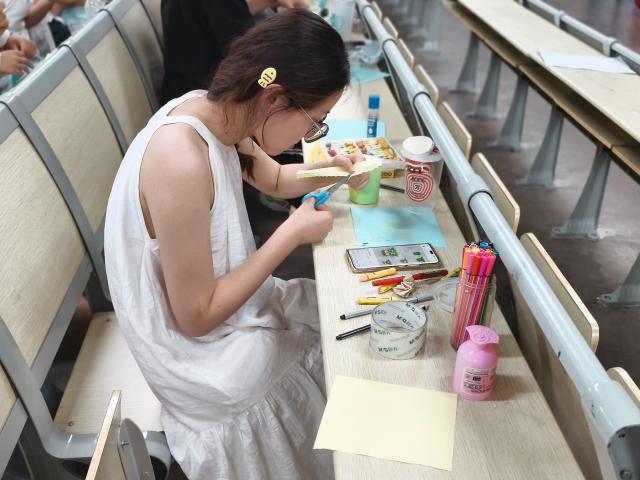 主持人向参与同学阐述了校园里废弃塑料瓶、奶茶瓶造成资源浪费与环境负担的现状,呼吁大家以创意赋予空瓶新价值,将绿色环保理念融入实践。随后,同学们利用卡纸、剪刀、胶棒等工具,专注运用裁剪、拼合与手绘技法,对收集的空瓶进行系统性改造。如将瓶体横向切割后嵌套组合,形成笔筒、文具收纳系统等模块化容器。在限定时间内,同学们充分发挥想象力,原本闲置的空瓶在巧手下变身独具匠心的环保作品。