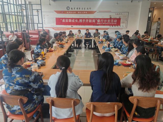 为助力大一新生快速融入大学集体生活,传递公司人文关怀,弘扬军训期间昂扬向上、坚毅奋进的精神风貌,9月18日,哈哈体育于东校区翰苑餐厅2楼举办了“桌前聊成长携手开新局”主题餐厅沙龙活动。公司团委书记刘杰与三位班主任老师,以及20余名大一新生代表围坐交流,共话成长。