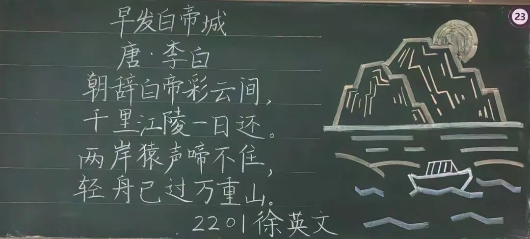 精彩纷呈的板书展现了同学们对传统文化的热爱和尊重,启发同学们对生活、自然和人生哲理的深层思考,展现了公司的活力与魅力,传递了公司的精神风貌,营造了积极向上的校园文化氛围。让我们携手努力,共同为打造更加丰富多彩的校园文化贡献力量!