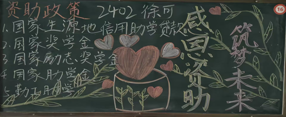 横竖撇捺,勾勒希望,字里行间,情暖人心。为全面普及国家资助政策知识,助力莘莘学子无忧逐梦,公司举办“资助政策绘蓝图 知识传递引航程"板书评选活动,经过对版面设计、板报内容、色彩运用、撰写方式等方面的综合考虑,2024-2025学年第五期国家资助政策宣传特别版评选结果如下: