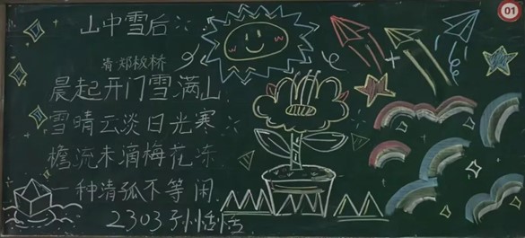 精彩纷呈的板书展现了同学们对传统文化的热爱和尊重,启发同学们对生活、自然和人生哲理的深层思考,展现了公司的活力与魅力,传递了公司的精神风貌,营造了积极向上的校园文化氛围。让我们携手努力,共同为打造更加丰富多彩的校园文化贡献力量!