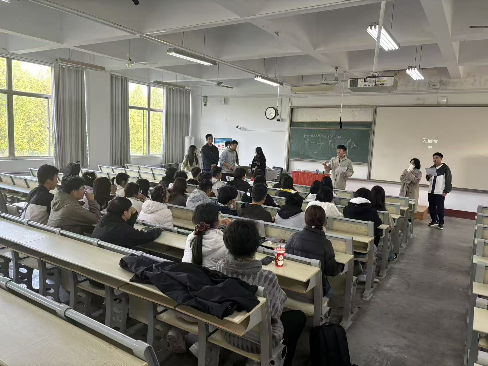 继前两项比拼后,“你画我猜接龙”项目登场,让创意与团队默契充分碰撞。首位同学根据题目绘画传递,后续成员依次猜题再创作,最后一人公布答案,裁判依据还原准确度与用时评分,不少抽象画作与脑洞猜测让现场充满欢乐气氛。而“戴耳机传递歌词”项目则考验肢体与口型表达,首名同学听歌词后,通过动作或口型依次传递,最后一人说出歌词,偏差与巧合交织的结果,让现场欢乐氛围持续升温。