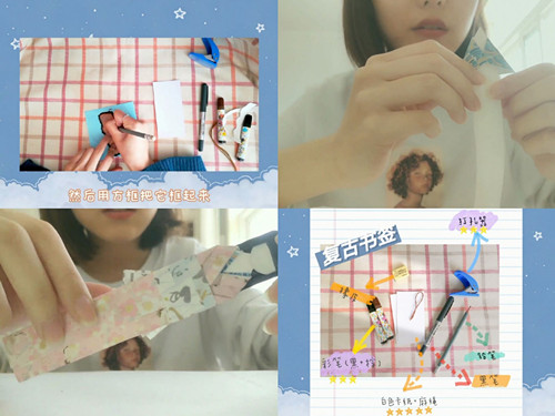 读万卷书,行万里路。此次创意书签大赛面向全院员工展开,采用线上评比的方式进行,要求参与者将制作书签的过程以录制视频的方式记录。同学们积极报名,踊跃参与,通过一张张书签凝聚创意,充分展现了同学们乐于动手,善于创新的优秀品质。在同学们制作的书签中,王硕的作品尤其突出,她以和服娃娃为灵感创作,采用多种色彩的卡纸制成娃娃衣物,成品书签精美小巧,赢得了在线评委的一致好评。解淼的作品别出心裁,她通过复古旅游书签于家中开展云旅游,制作书签朴实并极具美感,视频剪辑自然流畅,格外引人注目。