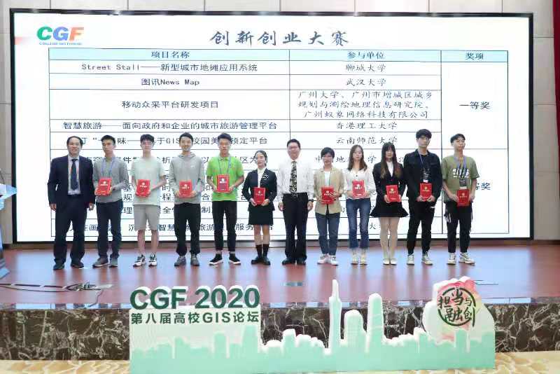 2020年11月7日至11月8日,由国家地理信息系统工程技术研究中心、地理信息系统产业技术创新战略联盟主办,广州大学地理科学与遥感公司及中地数码集团承办,中国地质大学(武汉)、北京大学、武汉大学及清华大学等多所院校协办的2020第八届高校GIS论坛创新创业大赛在广州市华泰宾馆(六层 广州厅)成功举办,HAHA体育环境与规划公司参赛项目《Street Stall——新型城市地摊应用系统》获得第一名。
