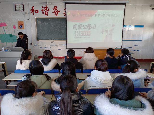 在缅怀中唤醒记忆,在表达中传递真情。本次活动分室内主题班会和室外宣讲两部分展开,活动期间,全体同学起立奏唱国歌,在拉响警钟、集体默哀三分钟后观看了缅怀先烈的纪录片,同学们被革命烈士的事迹所感动,对这些具有钢铁意志的战士和具有坚贞不屈精神的百姓肃然起敬,情之所起,掌声雷动,影片结束后同学们分组讨论,派出代表总结发言,进一步表达了对革命先烈的崇高敬意,最后,全体同学起立合唱《歌唱祖国》,在激情澎湃的歌声中结束了班会活动。主题班会结束后,同学们以宿舍为单位开展室外宣讲,进一步普及国家公祭日的相关知识。