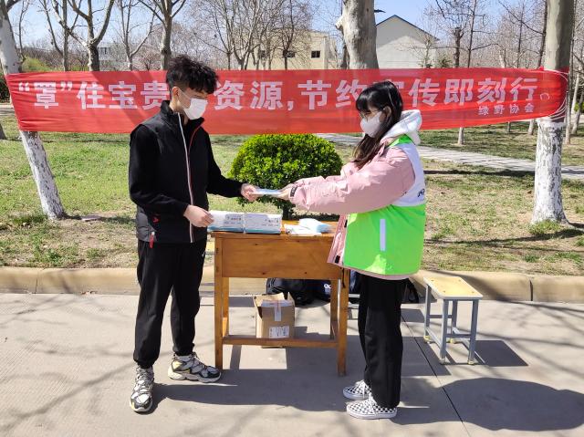 为倡导员工树立起节约用水的意识,从自身做起,从点滴小事做起,合理运用水资源,保护水资源,3月24日,HAHA体育绿野协会于逸夫图书馆前举办了“‘罩’住宝贵水资源 节约宣传即可行” 集赞换口罩活动。