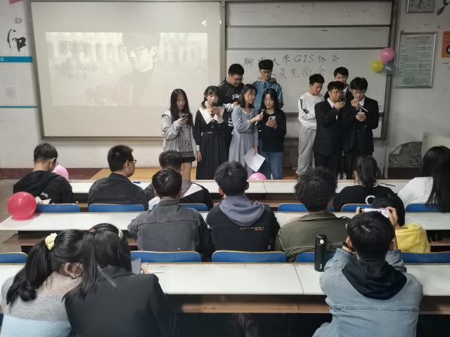 点燃青春梦想,共绘社团风光。本次见面会在主持人魏煦峰、王旭超、李柯璇、刘欣富有激情的开场白中正式拉开序幕。对于本次见面会,GIS协会副理事长作了简短的发言,向各位新会员详细介绍了GIS协会开展活动的意义、取得的成就,以及对GIS未来的畅想,使新会员更加深入地了解了协会成立的意义。随后一系列的才艺展示,充分激发了现场会员参与的热情,现场氛围更加热烈。魏熙峰一首《告白气球》莞尔动听,引燃了现场的气氛;隋欣池、高文浩等五位同学奉上的小品《量子速读》寓意深厚,同学们在欢乐中提高了自己的防骗意识。答非所问、外星语等游戏生动有趣,同学们踊跃登台参加,现场气氛在欢笑声中达到高潮。在GIS协会全体干事合唱的《素颜》中,本次见面会圆满落幕。