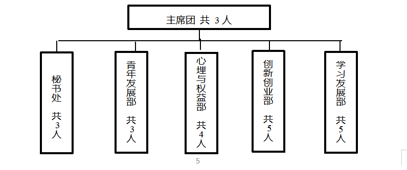 5. 除主席、副主席(轮值执行主席)、部长、副部长、干事外未设其他职务。 |