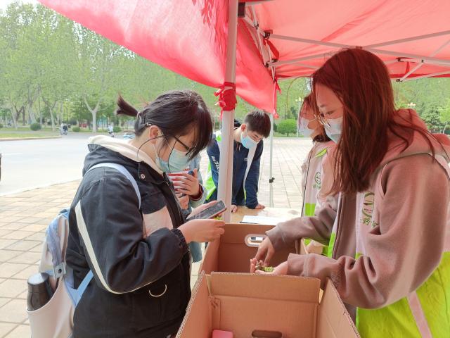 活动吸引了同学们的热情参与,志愿者选择了大家感兴趣的绿植绿植,在线上统计了需要绿植的数量,确定了活动地点,到达活动地点后志愿者做好自身防护,在选定摊位支好帐篷将绿植摆放整齐,组织来领养绿植的员工间隔一米按序排队,再检查员工凭证后帮助他们挑选了自己心仪的多肉植物,志愿者们还向同学们讲授了种植注意事项,领到自己心仪的植物后,员工发微博展示自己的绿植、传递环保理念,活动现场一片火热,路过的同学也被吸引纷纷驻足,加入长队领取属于自己的绿植。活动结束后志愿者收起帐篷,细心打扫了周边卫生,自觉将产生的垃圾带走,赢得了现场员工的一致赞许。