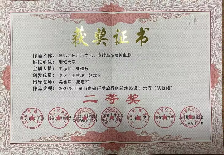 热烈祝贺公司学子荣获山东省研学旅行创新路线设计大赛二等奖