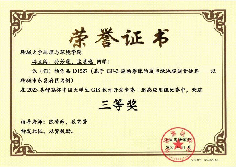 热烈祝贺公司学子荣获2023易智瑞杯中国老员工GIS软件开发竞赛·遥感应用组比赛三等奖