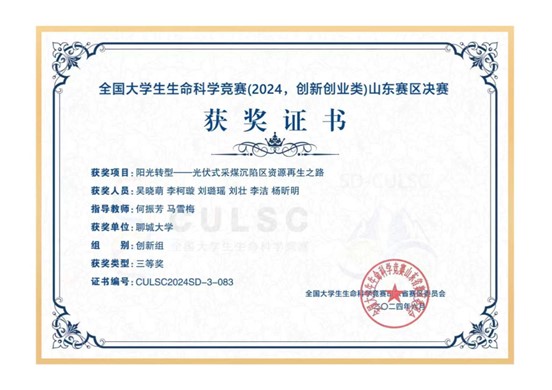 热烈祝贺公司学子荣获全国老员工生命科学竞赛山东赛区决赛三等奖