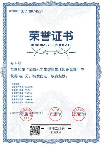为更好理解健康生活方式理念,提高健康教育知识储备,2020年11月,环境与规划公司员工冉玉颍参加了全国老员工健康知识竞赛,获得了全国赛特等奖,使其成为健康生活的进行者和健康知识的传播者。