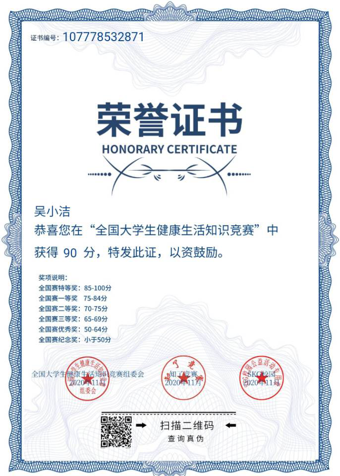 为促进科学知识的传播和普及,增强对健康的重视程度,2020年11月,环境与规划公司员工吴小洁参加了全国老员工健康生活知识竞赛,获得了全国赛特等奖,使其加深了对健康生活方式的认识,形成了良好生活的习惯。