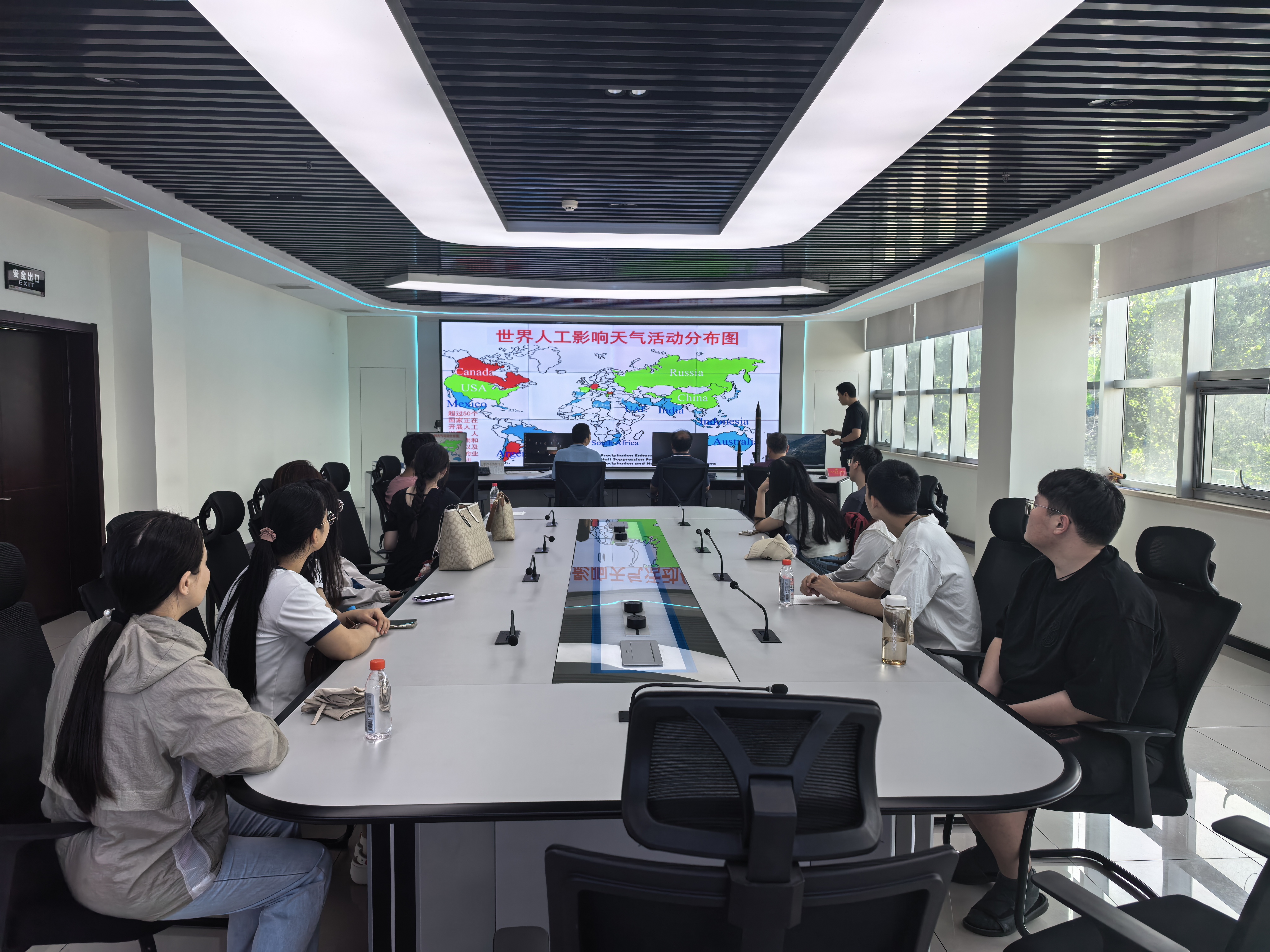 在气象会商室,同学们观摩了全国和山东省气象会商工作。中央气象台组织各省气象局就2025年一号台风“蝴蝶”有关信息和可能带来的影响进行交流和分析研判。在省气象会商会上,各市气象局就全省近期以及中长期天气情况进行交流和形势研判。在人工影响天气决策指挥中心,专家介绍了我国气象事业发展历程,并对人工影响天气装备、工作方法原理和成效进行了讲解。在气象野外观测场,专家讲解了气象观测工作的重要性、仪器设备工作原理和操作方法,并就我国气象工作的新进展新成就进行了介绍。同学们就气象工作原理、气象信息在各行业领域的应用以及气象与人工智能的融合发展等问题,与专家进行了深入而热烈的交流。