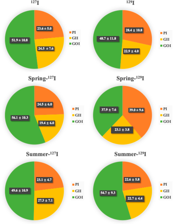 图2 西安大气中129I和127I形态水平与分布