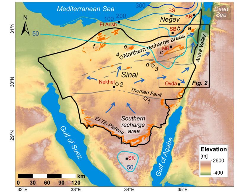 图 5 横跨以色列Negev沙漠和西奈半岛的Nubia大型地下水系统。图片取自Ram, R., et al., Journal of Hydrology 612, 128114 (2022)。