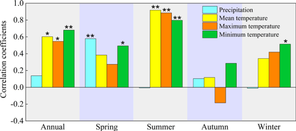 图2 青藏高原沼泽湿地植被年均NPP与气象因子的相关性