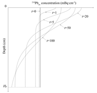 图1 退耕地土壤210Pbex深度分布变化模型模拟示意