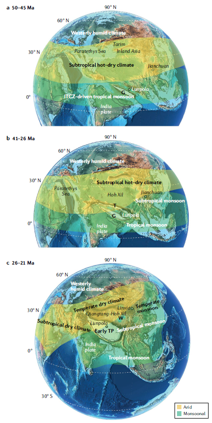 相关成果以Reorganization of Asian climate in relation to Tibetan Plateau uplift为题于9月20日在线发表在Nature Review Earth & Environment上。研究工作得到第二次青藏高原综合科学考察研究、国家自然科学基金委基础科学中心项目及中科院战略性先导科技专项的资助。