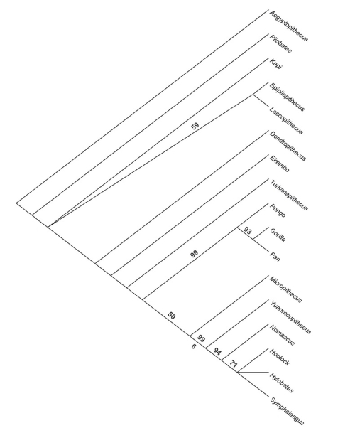 此前发现于印度中中新世(距今12.5-13.8百万年)的一枚下第三臼齿(命名为Kapi ramnagarensis)被认为是更早的长臂猿,而研究团队经过详实的分析对比证实发现,其不是长臂猿,而是与现生猿类没有密切关系的更原始的灵长类,或与印度晚中新世古猿有亲缘关系。