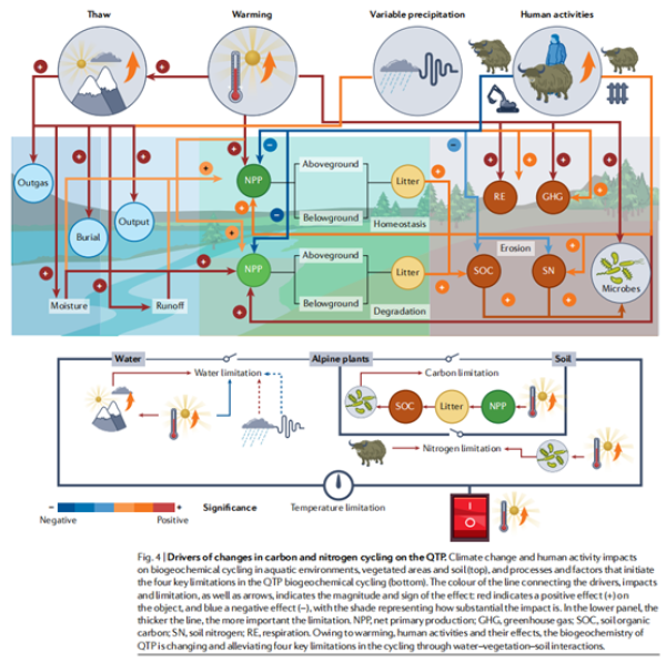 中国科公司成都生物研究所研究员陈槐、中国科公司大学资源与环境公司教授王艳芬等在《自然综述:地球与环境》(Nature Reviews Earth & Environment)上发表综述文章,综述两百余篇相关论文和大量样点通量监测数据,总结青藏高原上的碳氮循环变化及驱动机制,提出草地可持续管理、生态工程和绿色技术发展将抑制青藏高原温室气体排放,有助于维持青藏高原的碳汇功能。