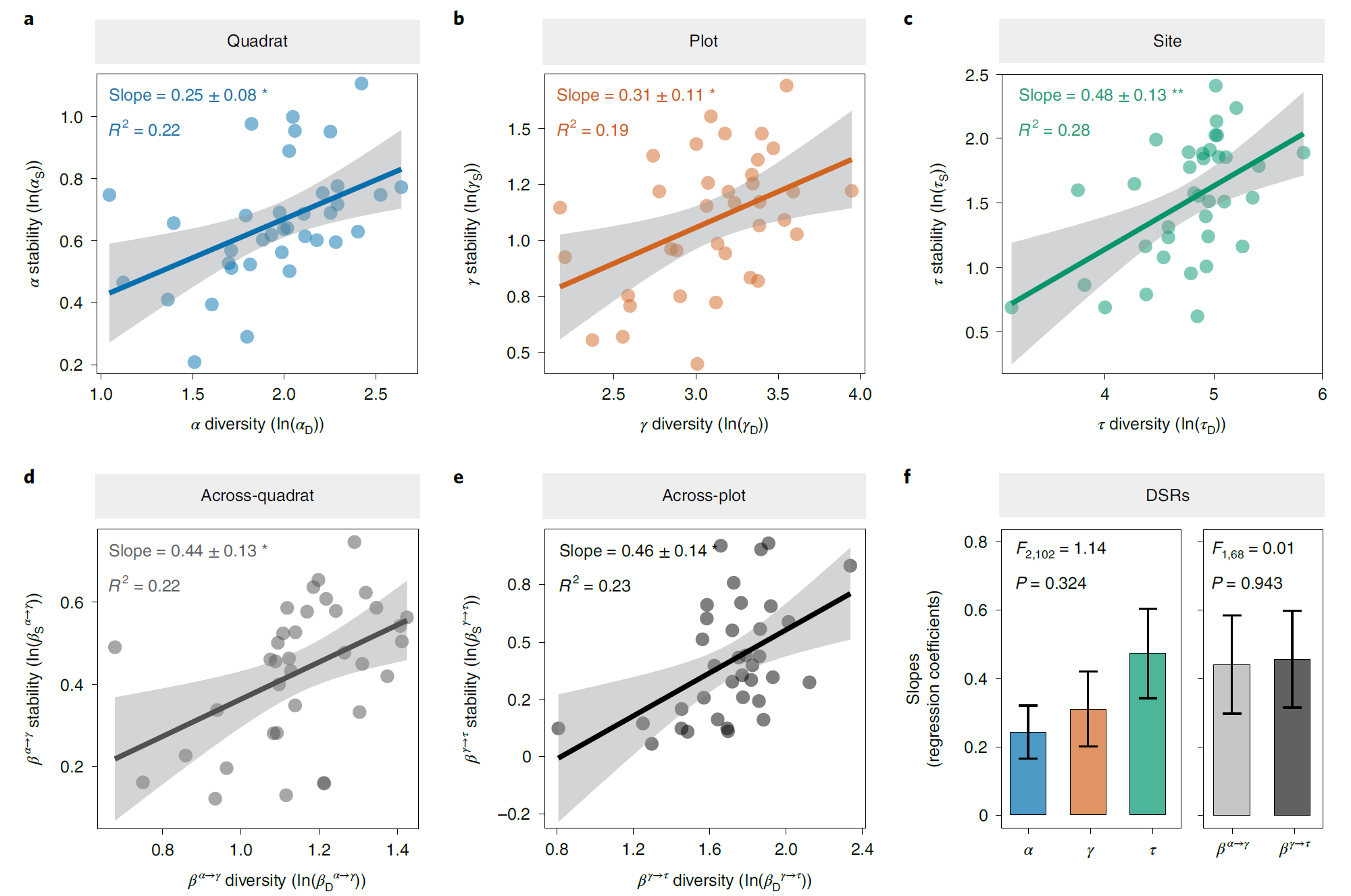北京大学城环公司王少鹏研究组在《自然•生态与进化》发表论文揭示生物多样性的多尺度稳定化作用